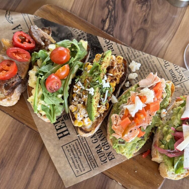 - Huevos Diablo (gf, vg) $10 – Roasted corn, lime, tajin, jalapeno, cotija, cilantro; avocado crema