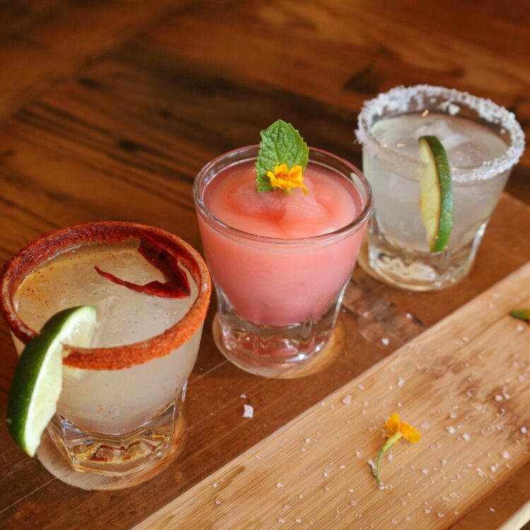 We recommend trying the Margarita Flight with Herradura Tequila! – Ghost Ranch Margarita, Fuego Margarita & Prickly Pear Frose Rita