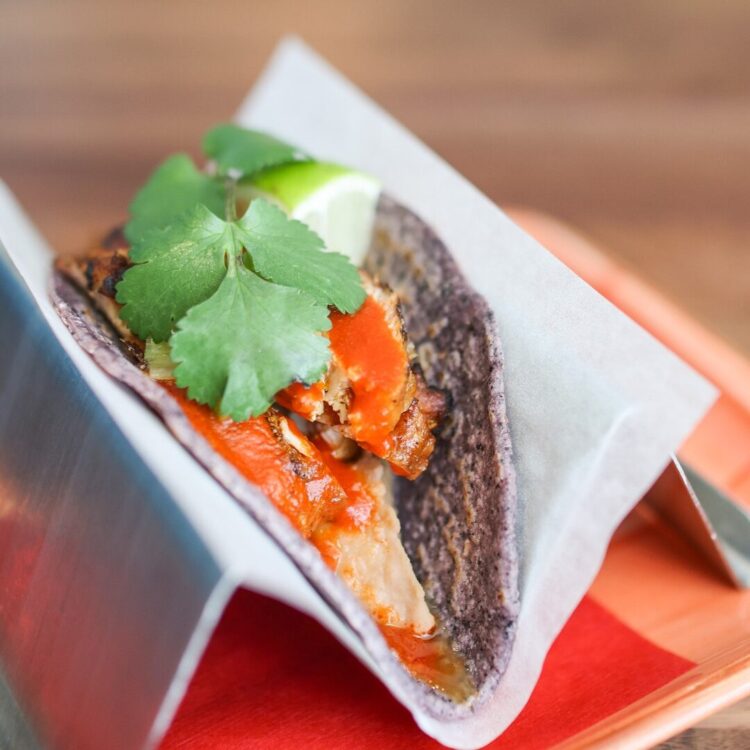 - $5 Taco De Carnitas – Confit pork with avocado salsa verde, pork rind, onions, and cilantro