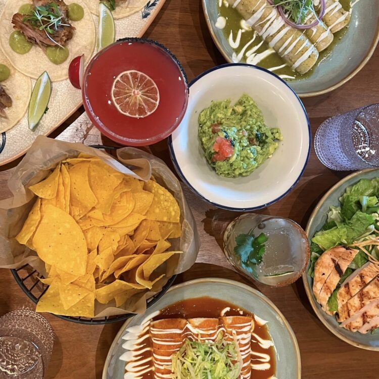 - Elotes – grilled corn, tajin, cotija cheese, crema, cilantro